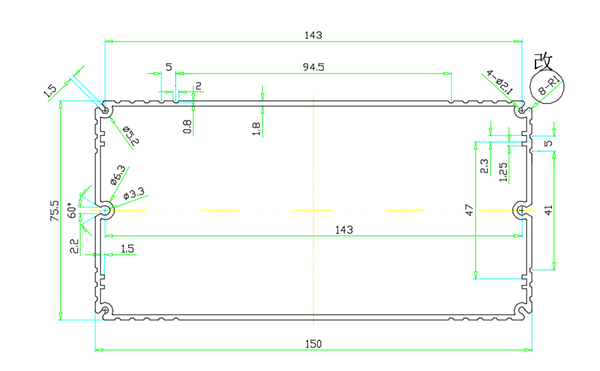 • 鋁合金外殼BY-175 規(guī)格:150X75