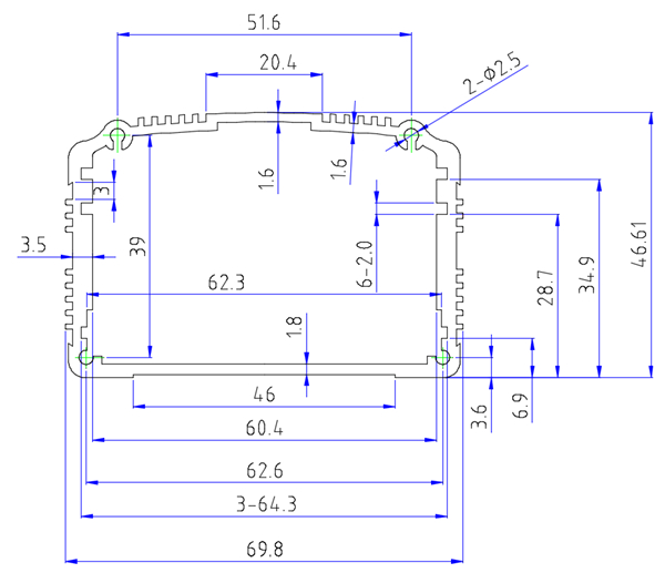 • 散熱鋁外殼BY-050 規(guī)格:70X46